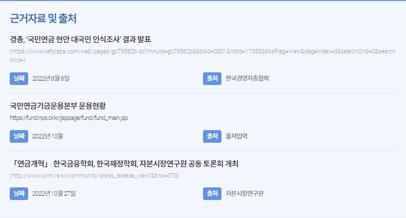 독자들의 가독성을 해치지 않기 위해 기사 하단에 별도 박스를 구성하고, 참고자료의 종류와 제목, url, 날짜 등을 공개합니다.