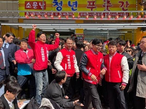 “아줌마들이 그래, 다시 태어나면 한동훈 같은 아들 낳고 싶다고”(60대 여성 이모씨) vs "유세할 시간에 공약을 고민해야 하지 않나“(20대 남성 강모씨) 총선을 2주 앞둔 27일, 한동훈 국민의힘 비상대책위원장이 인천을 찾았다. 시장과 대학을 연이어 방문한 한 위원장을 바라보는 시선은 사뭇 달랐다. 전통시장인 모래내시장에 한 위원장을 보기 위해 중장년층이 장사진을 이뤘지만, 인하대 후문에 위치한 문화의 거리에는 청년들이 먼 발치서 유세를 지켜봤다.◇ 중·장년층 북새통 이룬 모래내시장이날 오전 11시 10분