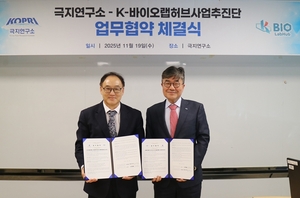 극지연구소(KOPRI)는 중소기업기술정보진흥원 K-바이오랩허브사업추진단과 바이오혁신사업 발굴을 위한 업무협약을 체결했다고 20일 밝혔다. MOU 행사는 지난 19일 인천 송도 극지연구소 청사에서 진행됐다.이번 협약은 극지 유래 유망기술을 기반으로 하는 혁신 바이오 창업기업의 발굴과 기업지원 생태계 구축을 목적으로 한다. 세부 내용은 △바이오 연구시설·인프라 공동활용 △바이오 기술 개발을 위한 공동 연구개발 및 사업화 협력 △ 국내외 바이오산업 생태계 확정 및 글로벌 협력 네트워킹 지원 등이 주요 내용으로 담겼다