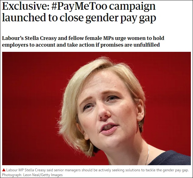 ‘페이 미투’ 운동을 주도하는 스텔라 크리시 노동당 의원은 가디언과의 인터뷰에서 “우리가 성별임금격차 문제를 심각하게 받아들인다면 관련 데이터를 공표하는 것 이상의 조치를 취해야 한다”면서 “이 문제가 어떻게 개선될지 (우리가) 지켜보고 있다는 것을 보여줘야 한다”고 말했다.