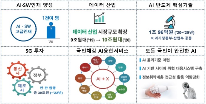 과기정통부 관계자는 “지난해 우리나라는 데이터·AI경제 활성화 계획, 세계 최초 5G 상용화, AI 기본구상 등으로 세계 최고 수준의 DNA 플랫폼 구축과 고도화에 집중했다”며 “올해는 이를 바탕으로 마련한 ‘인공지능 국가전략’을 본격 추진해 AI 일등국가로 가는 원년으로 삼을 것”이라고 밝혔다.