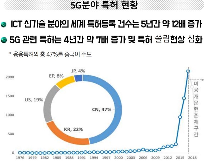 이처럼 ICT분야의 표준특허 확보가 향후 글로벌 ICT시장, 특히 5G분야 선두 확보의 핵심 열쇠가 될 것임이 분명함에도 우리나라의 5G통신 분야 ICT표준특허 확보 상황은 좋지 않다는 것이 전문가들의 분석이다.