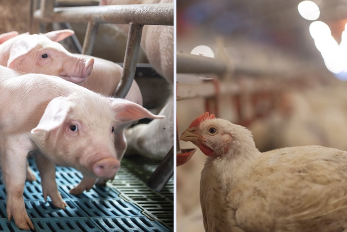 돼지고기나 닭고기의 이산화탄소 배출량은 각각 7.2kg, 6.1kg으로 소나 양보단 낮았으나 이산화탄소를 배출해 식물성 식품군보단 온실가스 발생량이 월등히 높았다.