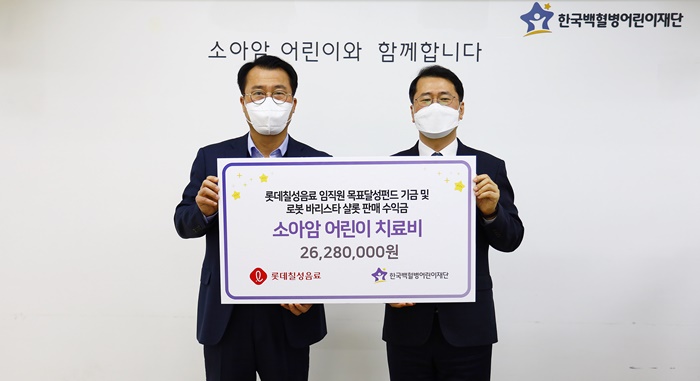 롯데칠성음료는 소아암·백혈병 환아들을 위한 소아암 전문 민간기관 ‘한국백혈병어린이재단’에 기부금을 전달했다고 21일 밝혔다.