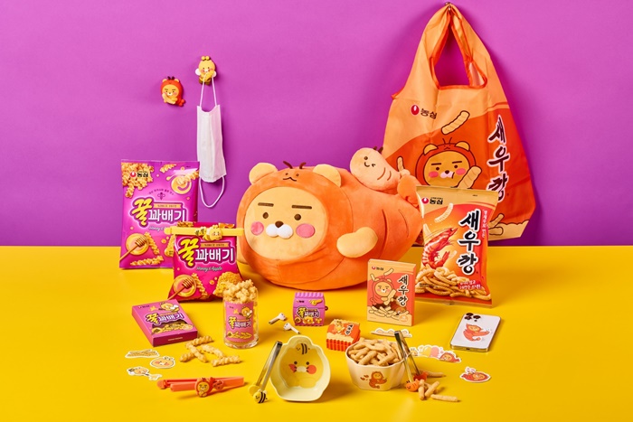 농심은 이번 협업을 통해 새우깡은 ‘라이언’, 꿀꽈배기는 ‘춘식이’와 만나 새로운 모습으로 등장한다고 소개했다. 농심은 두 캐릭터를 활용해 △스낵그릇과 집게세트 △밀봉집게 △마스크걸이 △장바구니 △쿠션 등 10종의 굿즈를 21일부터 카카오프랜즈 매장, 공식 온라인몰을 통해 선보일 예정이다.