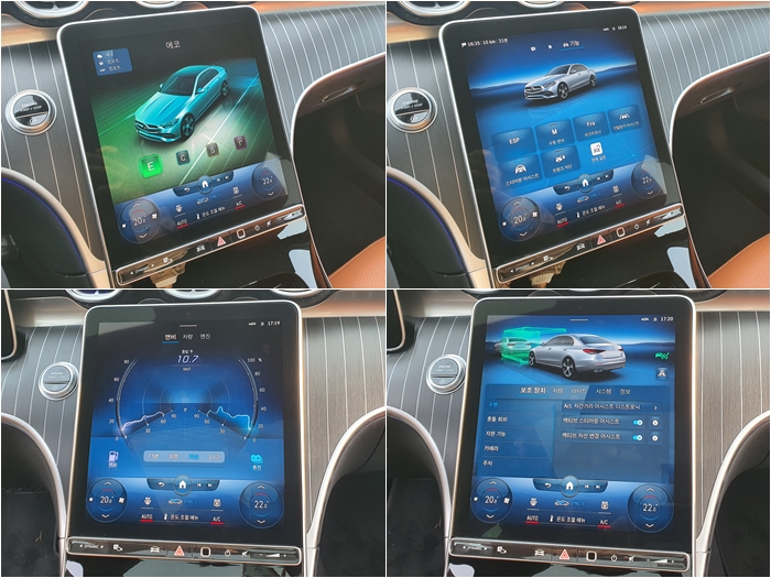 특히 인포테인먼트 시스템은 S클래스에 탑재된 2세대 MBUX(메르세데스-벤츠 유저 익스피리언스)가 그대로 적용으며, 고해상도 LCD가 사용돼 고급스러운 그래픽과 선명한 화질을 구현한다. 또 운전석을 향해 약 6도 정도 기울어있고, 상당히 뉘어져 있어서 시인성이 뛰어나고 조작이 편리하다. 운전석 계기판도 12.3인치 와이드 스크린이 탑재돼 실내가 완전히 디지털화 됐다.