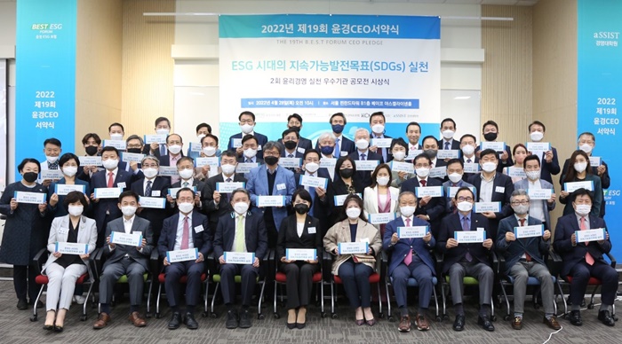 윤경 ESG포럼이 주최하고 산업정책연구원이 주관하는 서약식에는 140여명의 △기업 △사회단체 △학계 등 관계자들이 참여했다. 이들은 △탄소중립 실천에 앞장설 것 △사회 가치 실현에 협력 △산업계의 ESG 문화 확산 등 미래 세대를 위해 더 나은 사회·환경 구축에 최선을 다할 것을 다짐했다.