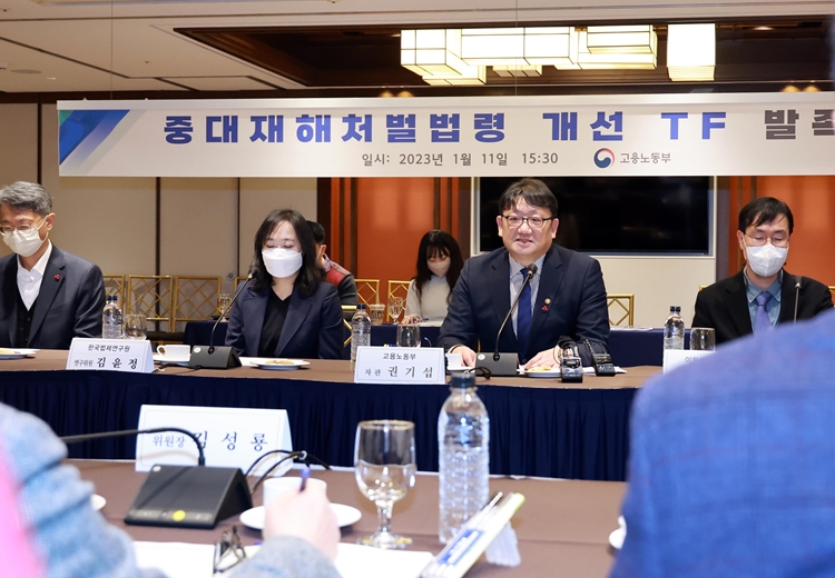 고용노동부는 지난 11일 중대재해처벌법령 개선을 집중 논의하기 위한 ‘중대재해처벌법령 개선 TF’를 발족했다고 밝혔다. TF는 학계를 중심으로 총 8명으로 구성됐으며, 산업안전법령(중대재해처벌법, 산업안전보건법)·형사법·경제법·산업안전보건 등 각 분야의 전문가들이 참여해 5개월 간 중대재해처벌법 개선방안을 집중적으로 논의할 예정이다.