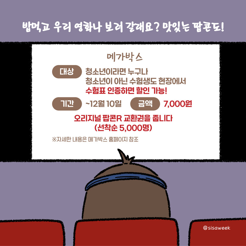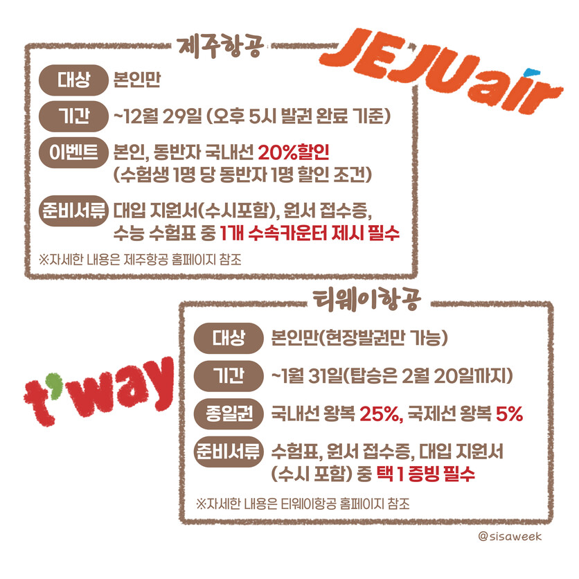 글, 그림=이주희 관련기사 [모리잇수다] “2024학년도 ‘국가장학금’ 신청하세요!” [모리잇수다] 새롭게 바뀌는 ‘청년 청약통장’, 알려드릴께요! [모리잇수다] 통근러들이 알면 좋은 ‘교통비 할인’ 꿀팁! [모리잇수다] 갑진년 설 명절, 건강하게 보내려면 ‘이것’부터 [모리잇수다] 보증금 100만원, ‘매입임대주택’을 알려줄께 [모리잇수다] Q&A로 알아보는 ‘청년주택드림청약통장’ 키워드 #툰 #수능 #이벤트 #수능이벤트 #롯데월드 #에버랜드 #빕스 #메드포갈릭 #메가박스 #제주항공 #티웨이항공 #놀이동산 #레스토랑 #항공 #영화관 이주희 그래픽 디자이너 dlwngml101@sisaweek.com 다른기사 보기 저작권자 © 시사위크 무단전재 및 재배포 금지 SNS 기사보내기 페이스북(으)로 기사보내기 트위터(으)로 기사보내기 카카오스토리(으)로 기사보내기 카카오톡(으)로 기사보내기 구글+(으)로 기사보내기 네이버밴드(으)로 기사보내기 네이버블로그(으)로 기사보내기 핀터레스트(으)로 기사보내기 URL복사(으)로 기사보내기 텔레그램(으)로 기사보내기 이메일(으)로 기사보내기 다른 공유 찾기 기사스크랩하기 이 기사를 공유합니다 페이스북(으)로 기사보내기 트위터(으)로 기사보내기 카카오스토리(으)로 기사보내기 카카오톡(으)로 기사보내기 구글+(으)로 기사보내기 네이버밴드(으)로 기사보내기 네이버블로그(으)로 기사보내기 핀터레스트(으)로 기사보내기 URL복사(으)로 기사보내기 텔레그램(으)로 기사보내기 닫기 개의 댓글 회원로그인 작성자 비밀번호 댓글 내용입력 댓글 정렬 최신순 추천순 답글순 BEST댓글 BEST 댓글 답글과 추천수를 합산하여 자동으로 노출됩니다. 닫기 더보기 댓글삭제 삭제한 댓글은 다시 복구할 수 없습니다. 그래도 삭제하시겠습니까? 비밀번호 닫기 댓글수정 댓글 수정은 작성 후 1분내에만 가능합니다. 본문 / 400 비밀번호 닫기 내 댓글 모음 닫기