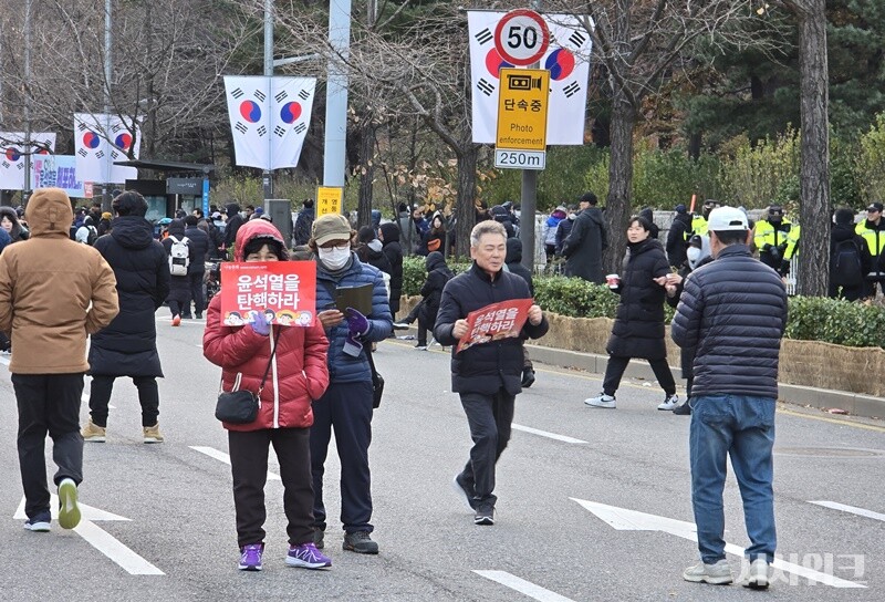 한 50대 남성은 “현재 상황은 정쟁의 대상이 아니다”며 “국회의원 모두가 힘을 합쳐 국민의 뜻을 받들어야 한다”고 큰 소리로 외쳤다. 또 “국민의 생명을 담보로 내란행위를 한 자는 더 이상 국민이 뽑은 대통령이 아니다”라며 “철저한 수사와 모든 책임을 물어야 한다”고 말했다.