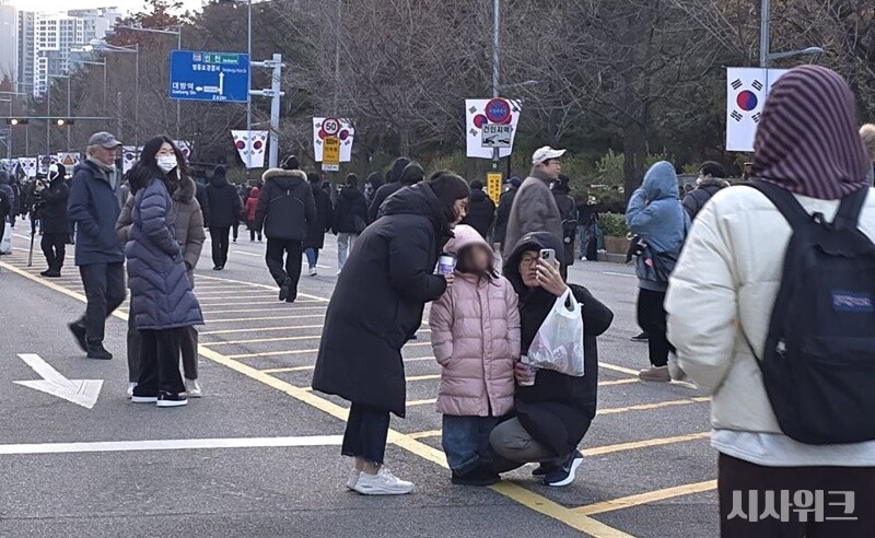 이날 한강의 거센 강바람으로 인해 체감온도는 영하에 가까운 날씨에도 불구하고 윤석열 대통령 탄핵 집회현장에는 어린아이부터 연세가 지긋한 어른까지 엄청난 인파가 모여들었다.