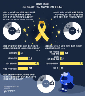 시사위크=권정두 기자, 안혜림·임다영·홍서연 인턴기자 2014년 4월 16일, 인천에서 제주도로 향하던 여객선 세월호가 진도 앞바다에 침몰했다. 476명의 탑승자 중 304명이 사망 및 실종된 역대 최악의 참사였다. 끔찍한 참사를 직접 경험한 생존자들, 그리고 소중한 가족을 황망하게 떠나보낸 유가족들, 그리고 이를 지켜본 국민 모두에게 그 무엇으로도 씻을 수 없는 상처가 남았다.◇ 11년 지났어도 일반인 대비 심각… 참사 주기 다가오면 되살아나는 고통그로부터 어느덧 11년이란 짧지 않은 시간이 지났다. ‘시간이 약’이란 말이 있듯,