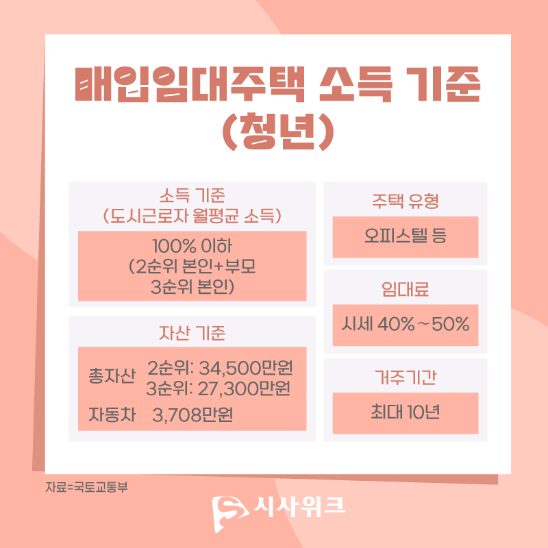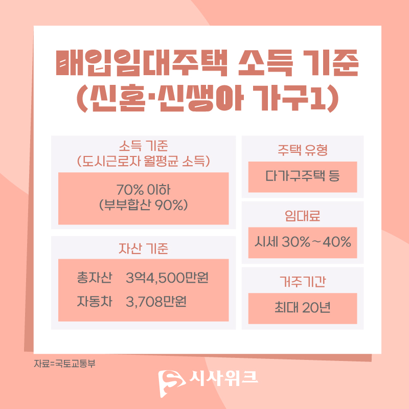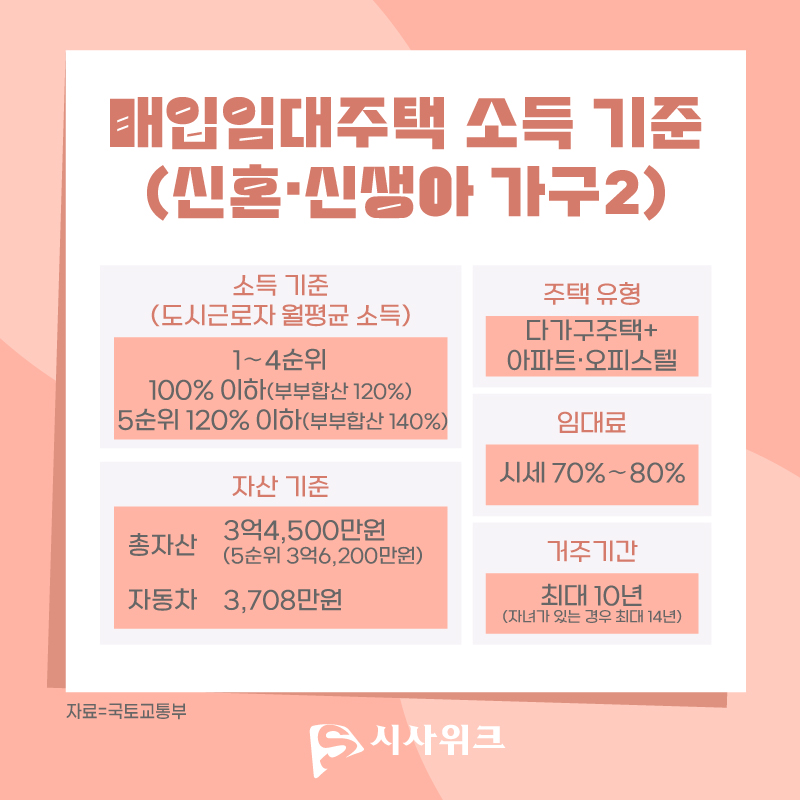 자료=국토교통부, 그래픽=이주희 #카드뉴스 #카드 #매입임대주택 #임대주택 #청년 #신혼부부 #신생아 #주택 #임대 #3차 키워드 #카드뉴스 #카드 #매입임대주택 #임대주택 #청년 #신혼부부 #신생아 #주택 #임대 #3차 이주희 그래픽 디자이너 dlwngml101@sisaweek.com 다른기사 보기 저작권자 © 시사위크 무단전재 및 재배포 금지 SNS 기사보내기 페이스북(으)로 기사보내기 트위터(으)로 기사보내기 카카오스토리(으)로 기사보내기 카카오톡(으)로 기사보내기 구글+(으)로 기사보내기 네이버밴드(으)로 기사보내기 네이버블로그(으)로 기사보내기 핀터레스트(으)로 기사보내기 URL복사(으)로 기사보내기 텔레그램(으)로 기사보내기 이메일(으)로 기사보내기 다른 공유 찾기 기사스크랩하기 이 기사를 공유합니다 페이스북(으)로 기사보내기 트위터(으)로 기사보내기 카카오스토리(으)로 기사보내기 카카오톡(으)로 기사보내기 구글+(으)로 기사보내기 네이버밴드(으)로 기사보내기 네이버블로그(으)로 기사보내기 핀터레스트(으)로 기사보내기 URL복사(으)로 기사보내기 텔레그램(으)로 기사보내기 닫기 개의 댓글 회원로그인 작성자 비밀번호 댓글 내용입력 댓글 정렬 최신순 추천순 답글순 BEST댓글 BEST 댓글 답글과 추천수를 합산하여 자동으로 노출됩니다. 닫기 더보기 댓글삭제 삭제한 댓글은 다시 복구할 수 없습니다. 그래도 삭제하시겠습니까? 비밀번호 닫기 댓글수정 댓글 수정은 작성 후 1분내에만 가능합니다. 본문 / 400 비밀번호 닫기 내 댓글 모음 닫기